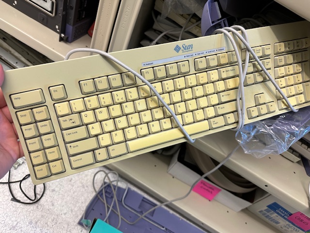 >> in new or like new condition. I just like them, I've got a pretty good one on my new PC, but I thought I had a brand new one waiting. Turns out I have a new in plastic bag Sun Unix style keyboard and another like new. Will trade for a Sun PC style keyboard. Or buy the Sun PC style keyboard. Would be happy to get another Sun mouse, too.